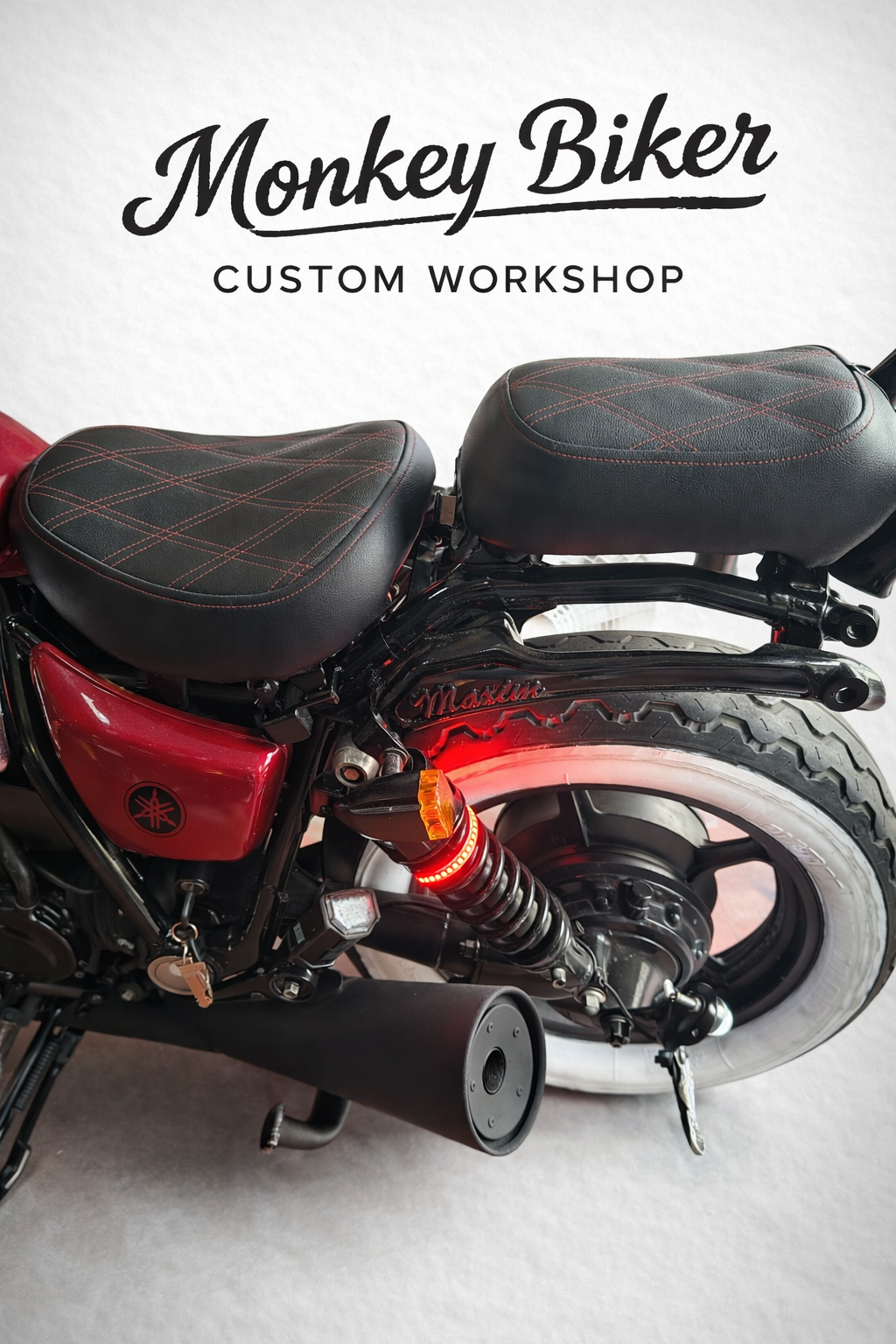 Podemos ver una moto con bastante detalles como su asiento monoplaza en cuero acabado con un diseño rombos color rojo y diseñado para colocarle sillon de copiloto l, nuevos instrumentación e iluminación led